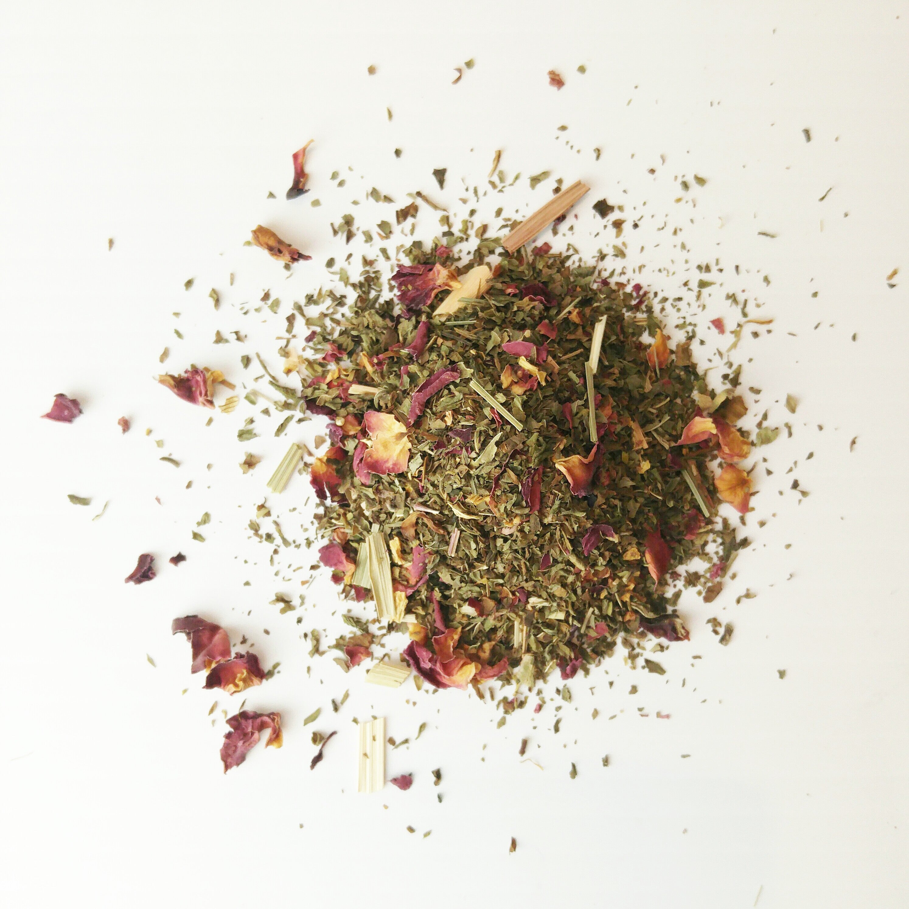 Ingredients: *Spearmint, *Rose Petals, *Lemon Balm, *Lemongrass, *Sunflower Petals, *Natural Essence